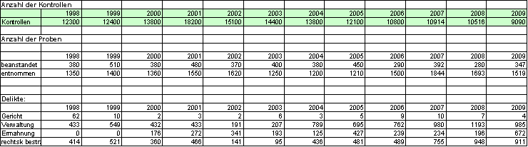 Da die Weinkontrolle in den einzelnen Mitgliedstaaten sehr unterschiedlich organisiert ist, liegen keine Vergleichswerte vor.