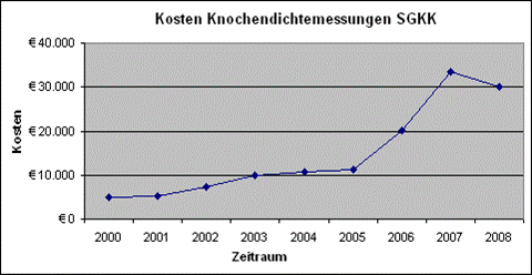 Die Burgenländische Gebietskrankenkasse honoriert pro durchgeführte Knochendichtemessung einen Tarif von € 30,30.