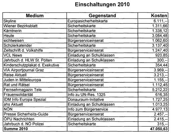 Vom BMeiA wurden im Jahr 2010 insgesamt €47.050,63