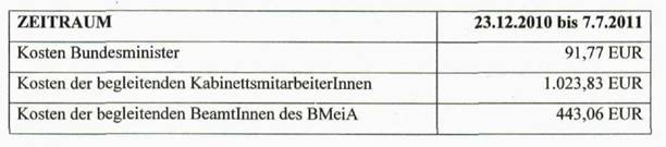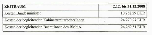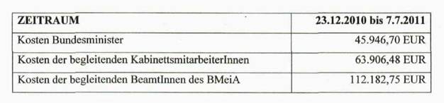 Mitglieder meines Büros, von BeamtInnen meines Ressorts sowie die dadurch entstandenen Kosten sind in der Beilage C und der nachstehenden Tabelle angeführt.