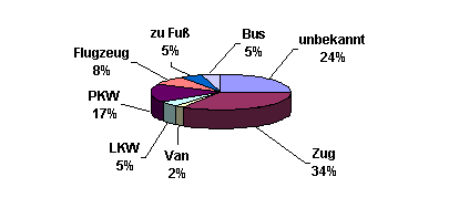 Grenzübetrittsländer 2008 (Prozente gerundet)