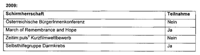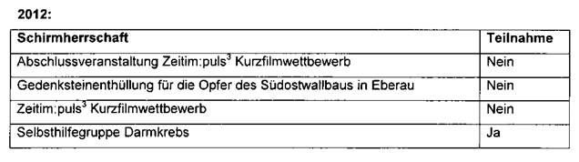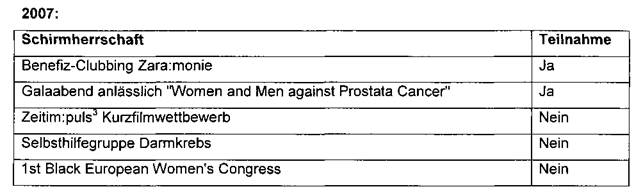 Aufzeichnungen meines Büros habe ich folgende Schirmherrschaften über