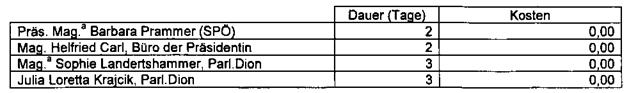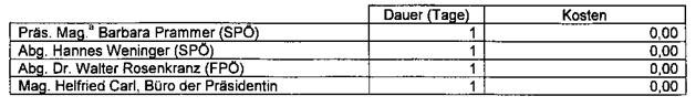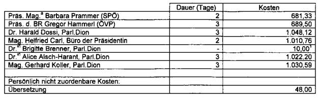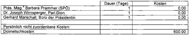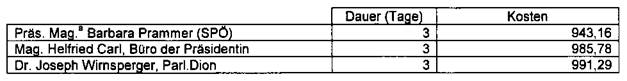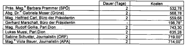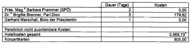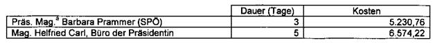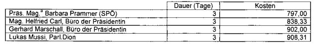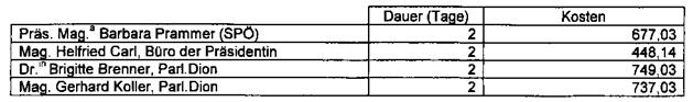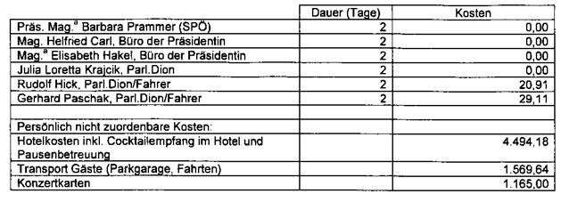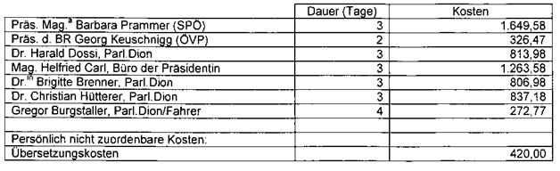 Die Kosten für die angeschlossene Reise der Präsidentin zu einer Konferenz in San José wurden der Parlamentsdirektion nur für den begleitenden Mag. Carl verrechnet.