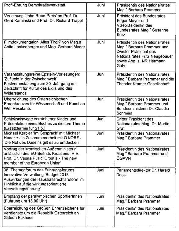Der Dritte Präsident des Nationalrates Dr. Martin Graf hat an die Präsidentin des Nationalrates die schriftliche Anfrage 113/JPR betreffend "Veranstaltungs-un-wesen im Hohen Haus", welche am 6. Juni 2013 eingelangt ist, gerichtet. Diese Anfrage beantworte ich wie folgt: