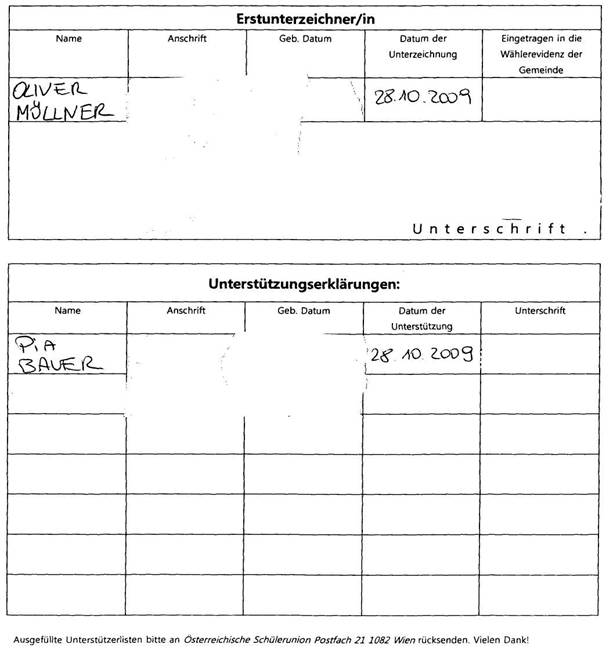 Schülerorganisation Österreichs, der Schülerunion, umzuset-