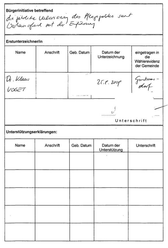 Der Nationalrat wird ersucht, schnellstmöglich alle erforderlichen Schritte zu setzen, um das Pflegegeld so anzupassen, dass es inflationsbereinigt dem Wert bei dessen Einführung im Jahr 1993 entspricht.