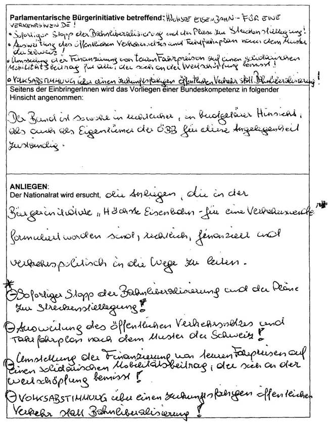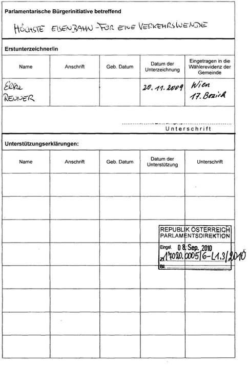 Formblatt für eine Parlamentarische Bürgerinitiative