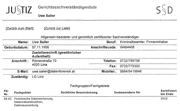 für Datenforensik in Österreich. Und fertigt in dieser Funktion