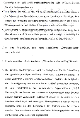 – Ebenso soll verfassungsgesetzlich festgelegt werden, vor welchen Behörden und Dienststellen die kroatische, slowenische oder ungarische Sprache zusätzlich zur deutschen Sprache als Amtssprache verwendet werden kann.