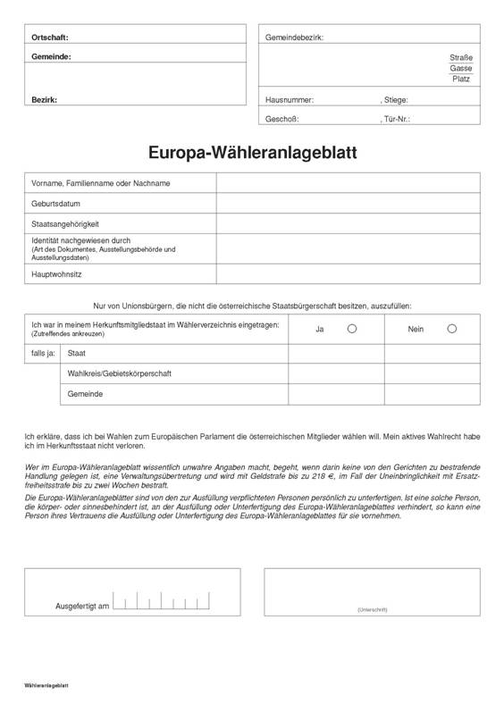 „Ein Unionsbürger, der nicht die österreichische Staatsbürgerschaft besitzt, hat als Bewerber schließlich bis zum vierunddreißigsten Tag vor der Wahl, 17.00 Uhr, eine Bescheinigung der nach der nationalen Rechtsordnung des Herkunftsmitgliedstaates für den Informationsaustausch zuständigen Behörde vorzulegen.“