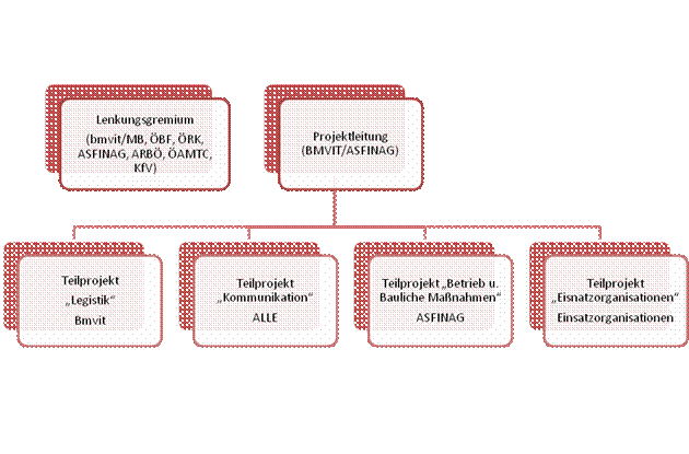 Ausgehend von dieser Vorgabe ist seitens der ASFINAG im Bereich Verkehrsmanagement im März 2009 ein Projekt aufgesetzt worden, mit dem Ziel die Einführung der Rettungsgasse am A+S Netz in Österreich zu prüfen sowie die notwendigen Vorbereitungs- und Begleitmaßnahmen zu detektieren.