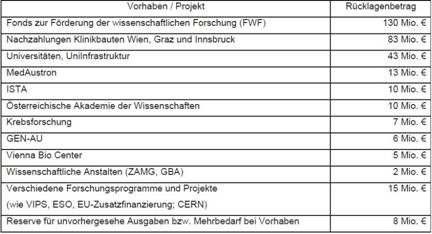 Rücklagen des Bundesministeriums für Wissenschaft und Forschung