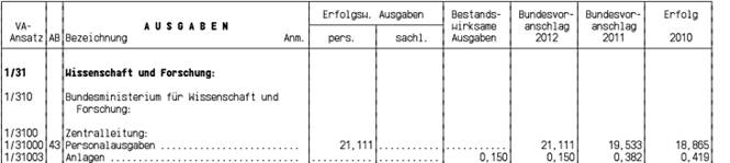 Laut Auskunft der Personalabteilung vom 31. Jänner 2012 sind für das aktuelle Jahr 773 Planstellen im BMWF ausgewiesen.