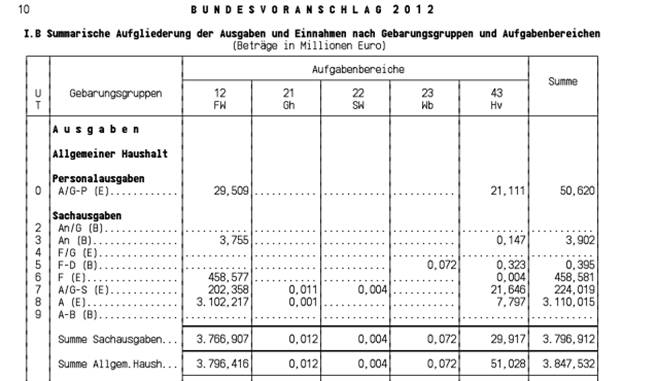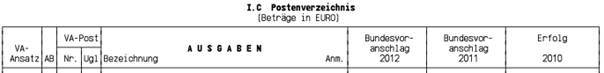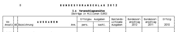 Weitere Screenshots aus dem Arbeitsbehelf zu Budget 2012, Markierungen kennzeichnen Details, auf welche sich spätere Fragen beziehen: