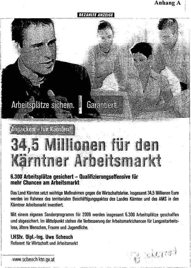 Schlagzeile „34,5 Millionen für den Kärntner Arbeitsmarkt"
