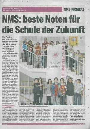 In der Tageszeitung "Österreich" vom 20. Juni 2012 ist auf Seite 35 ein Inserat des BMUKK mit dem Titel "NMS: beste Noten für die Schule der Zukunft " zu finden, auf dem auch die Ministerin abgebildet ist.