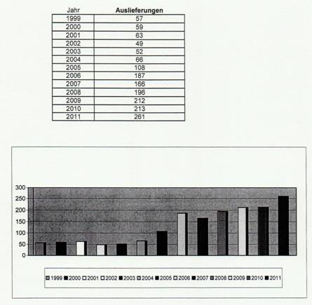 Grafische Darstellung über durchgeführte Auslieferungen und Strafverbüßungen im Heimatland: