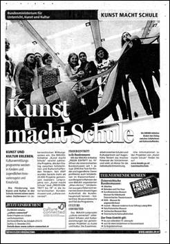 In der Tageszeitung „Österreich“ vom 28. September 2012 ist auf Seite 37 ein Inserat des BMUKK mit dem Titel „Kunst macht Schule“ zu finden.