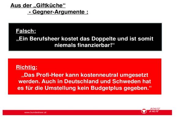 Am 17. September 2012 wurde bei der SPÖ-Klubklausur von Bundesminister Darabos eine Präsentation zum Berufsheer gezeigt, welche unter anderem folgende Seite enthielt: