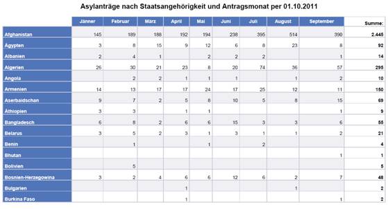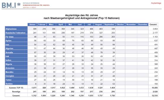 Nachdem der Asylstatistik schon die Belagszahlen der Betreuungsstellen abhanden gekommen sind, werden auch im Vergleich zum letzten Jahr nur mehr die Top 15 Nationen der Asylantragsteller angeführt.