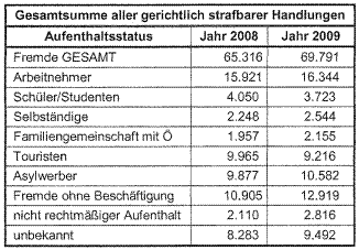 viele straffällige Asylwerber aufgegliedert nach Nation und Delikt,