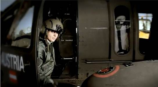 Hubschrauberpilotin“ zu finden. Das Video eines privaten Vereins wirbt