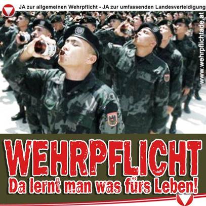 Auf der, von der Interessengemeinschaft Wehrpflicht ade betriebenen Internetplattform, www.wehrpflichtade.at waren unter anderem Sujets zu finden, auf denen militärische Hoheitszeichen in missbräuchlicher, herabwürdigender und beschämender Weise verwendet wurden. Hier ein Beispiel: