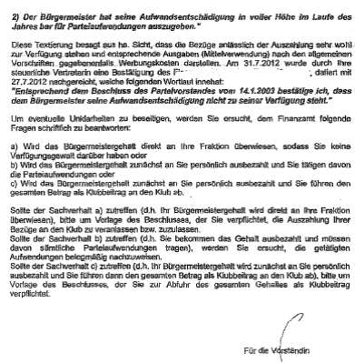 Mit dieser Vorgangsweise soll der Bürgermeisterbezug zur Gänze steuerbefreit werden. Dies indiziert eine falsche Angabe gegenüber dem Finanzamt, zumal sich aus der Korrespondenz des Finanzamtes ergibt, dass die Parteiabgabe 16% beträgt.