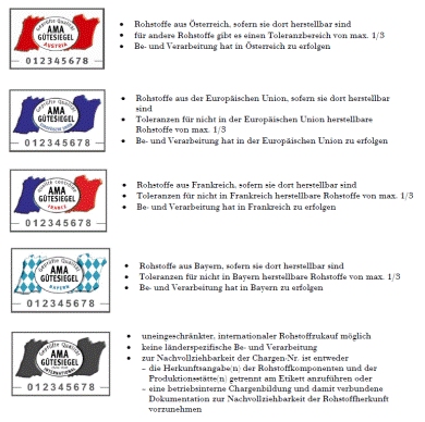 Wie in der AMA-Gütesiegel-Richtlinie für Be- und Verarbeitungsprodukte ersichtlich, wird „anderen Rohstoffen“ ein Toleranzbereich von bis zu einem Drittel eingeräumt.