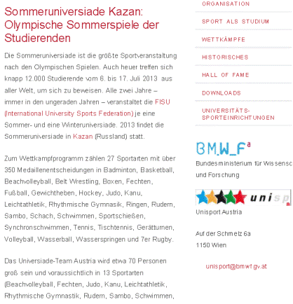 In einem Beitrag auf der Webseite des Bundesministerium für Wissenschaft und Forschung - Unisport Austria (http://www.unisport-austria.at/sommeruniversiade-kazan-olympische-sommerspiele-der-studierenden/) ist zu lesen: