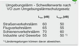 Die Grenzwerte sind abhängig von der Immissionssituation vor Realisierung der baulichen Maßnahmen um bis zu 5 dB zu verringern. Somit wird grundsätzlich bei Neubauvorhaben ein sich belästigt fühlender Anteil der Bevölkerung von einem Viertel bzw. einem Drittel in Kauf genommen.