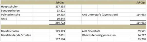 Das war mir zu wenig, also war mal die Statistik dran, die Angaben sind vom bm:ukk für das Jahr 2011.