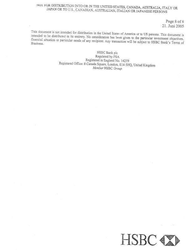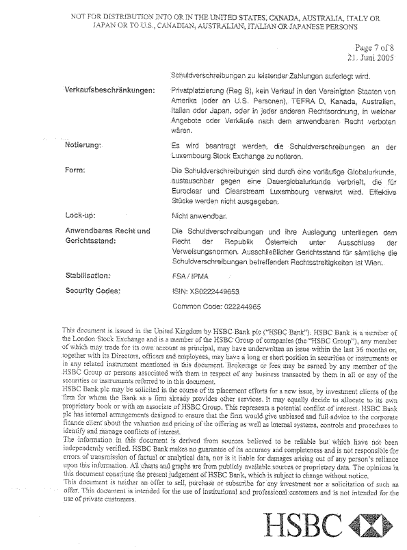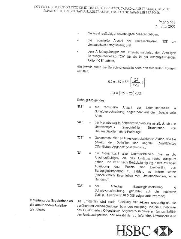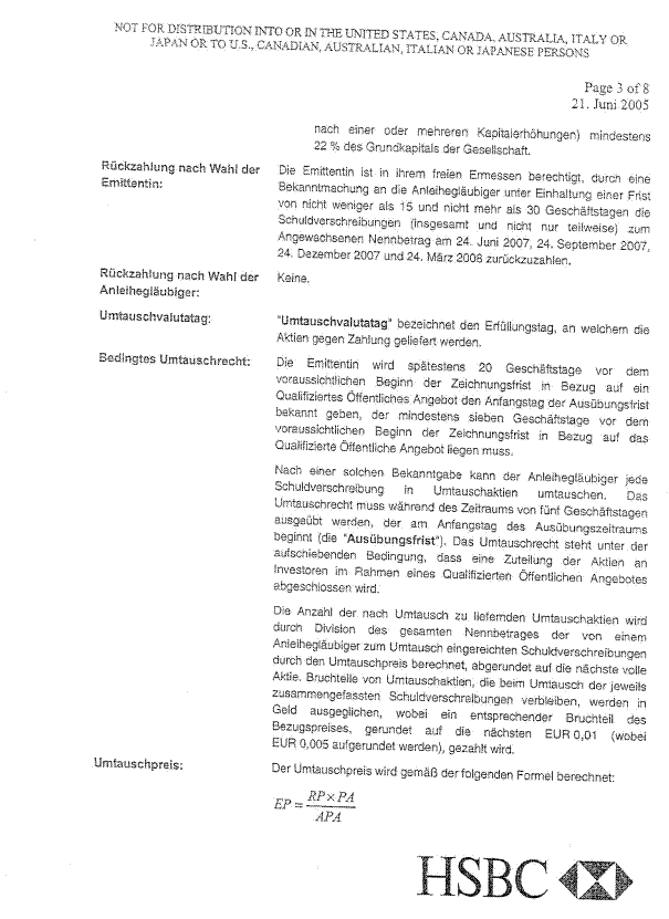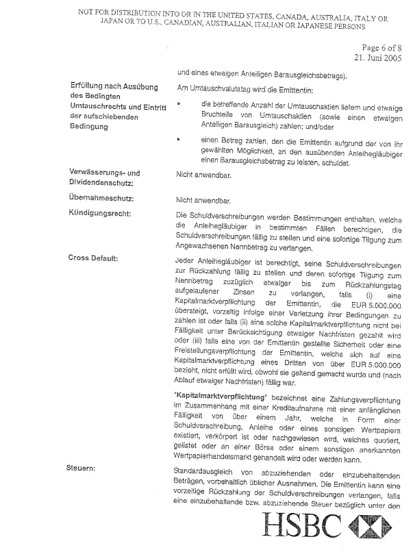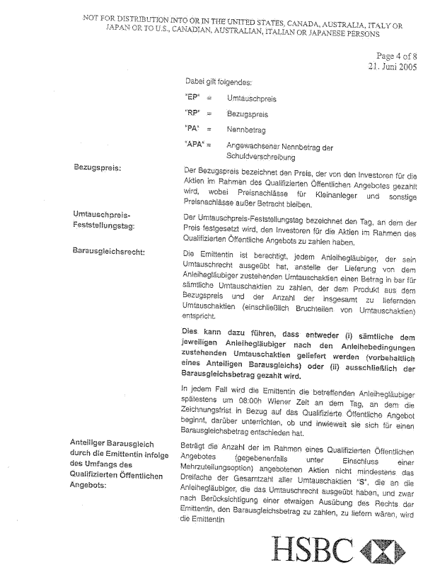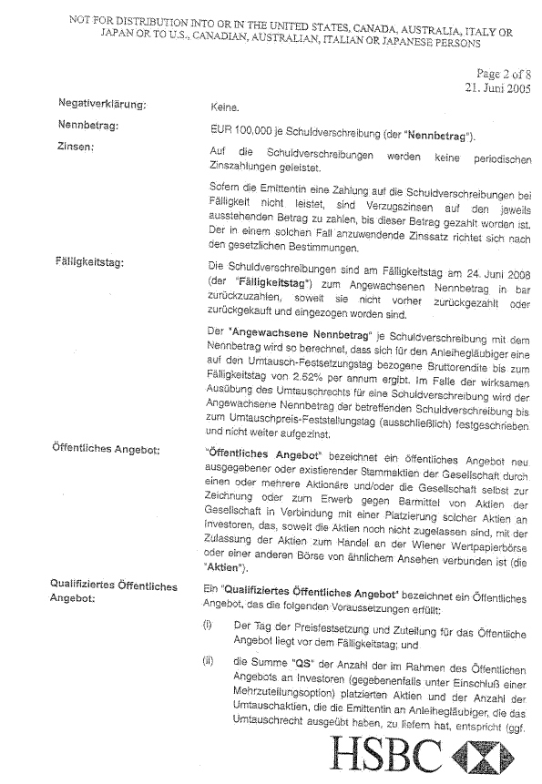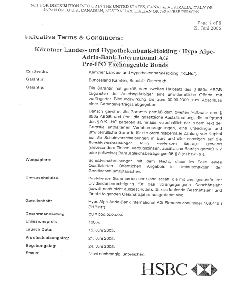 Am 15. Juni 2005 hat die Kärntner Landes- und Hypothekenbank-Holding/Hypo Alpe-Adria-Bank International AG folgende Wandelanleihe aufgelegt: