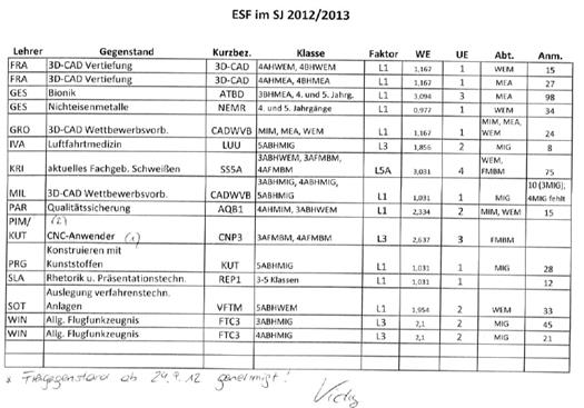 • In der Antwort auf die Anfrage 13149/J zu den Fragen 53, 56, 61 und 69 wird eine Tabelle mit 21 Unterrichtsangeboten angegeben und behauptet, dass „im September 2012 zunächst alle (!) nachstehend dargestellten 21 Unterrichtsangebote vorgesehen“ gewesen wären. Wie begründet der Schulleiter der HTL Eisenstadt DI Wagner dann die Tatsache, dass der FPÖ ein Schreiben vom 24. 9. 2012 vorliegt, das 15 Freigegenstände als genehmigt anführt, unter denen die Physikolympiade nicht genannt ist?