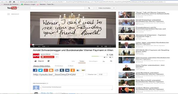 Am 08.09.2013 veröffentlichte die SPÖ einen Werbefilm in dem Bundeskanzler Faymann und Arnold Schwarzenegger gemeinsam durch das Bundeskanzleramt flanieren.