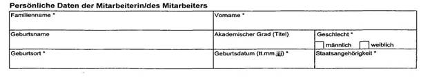 Dieses Formular enthält unter dem Punkt „Persönliche Daten der