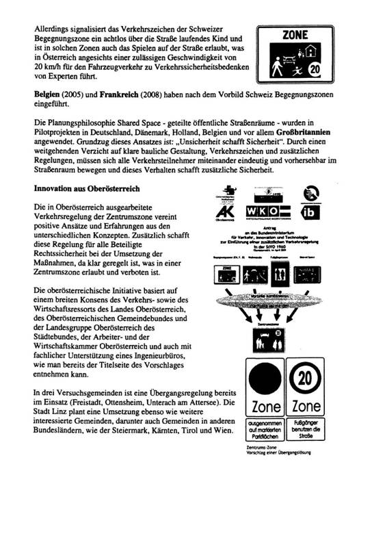 6. Ist Ihnen der Vorschlag aus dem Bundesland OÖ zur Einführung einer zusätzlichen Verkehrsregelung „Zentrumszone" in der StVO 1960 vom April 2009 bekannt?