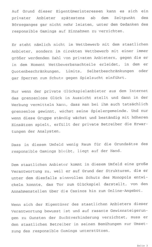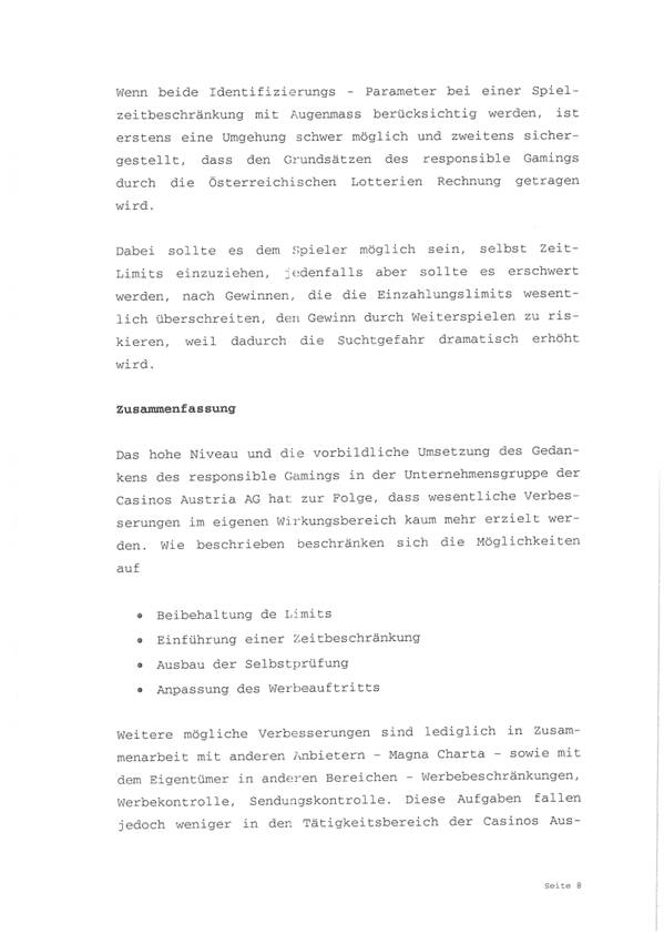 Angesichts dieser kurzen und sehr allgemein gehaltenen Ausführungen ohne erkennbare Faktengrundlage, welche den auf den Glücksspielbetrieb seit langen Jahren spezialisierten Casinos Austria / Österreichische Lotterien wohl keine neuen Erkenntnisse liefern konnten, scheint der verrechnete Betrag von Euro 300.000 exorbitant hoch, und sind zumindest starke Zweifel am Gegenwert des Gutachtens angebracht.
