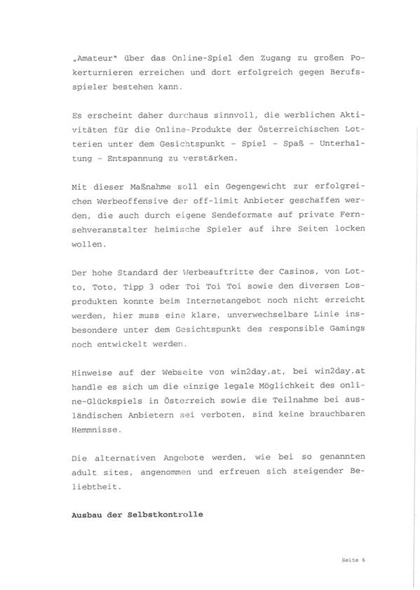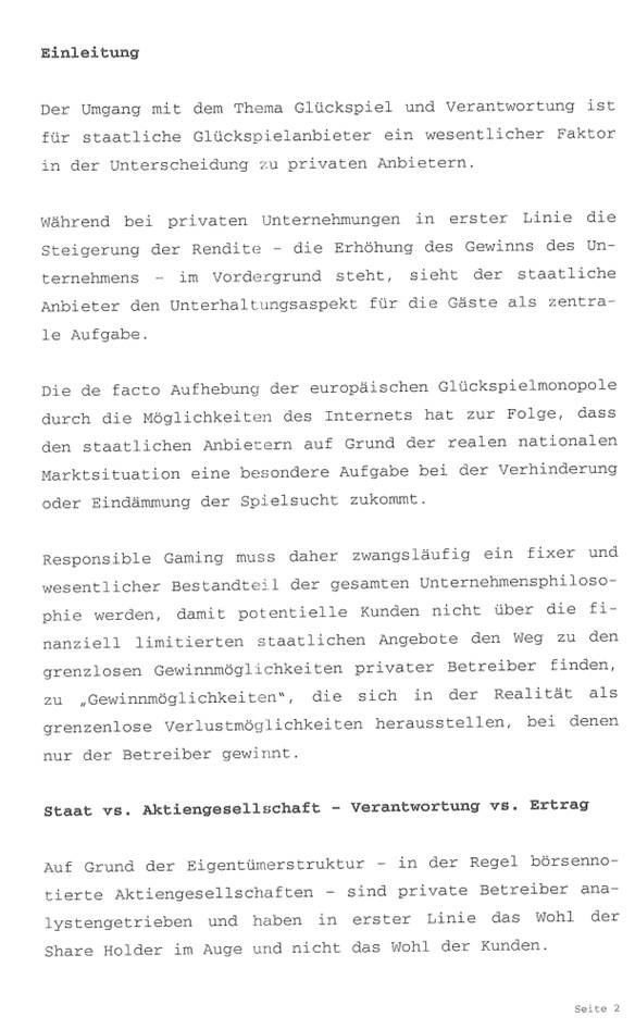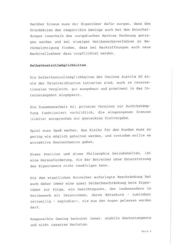 Angesichts dieser kurzen und sehr allgemein gehaltenen Ausführungen ohne erkennbare Faktengrundlage, welche den auf den Glücksspielbetrieb seit langen Jahren spezialisierten Casinos Austria / Österreichische Lotterien wohl keine neuen Erkenntnisse liefern konnten, scheint der verrechnete Betrag von Euro 300.000 exorbitant hoch, und sind zumindest starke Zweifel am Gegenwert des Gutachtens angebracht.