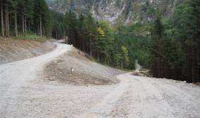 Um Holz aus dem Bergwald zwischen Karalm und Wandalm zu gewinnen, wurde nun noch vor Baubeginn dieses eigentlichen „Güterweges“ von Au zur Karalm durch die ÖBf mit dem Bau einer kilometerlangen Forststraße durch den unberührten Bergwald von der Karalm bis zum Kar unterhalb der Wandalm begonnen. Von heute auf morgen waren Bagger, Laster und Walzen vor Ort und holzten ab, was das Zeug hielt. Auch hier ist die Prämisse, breit genug und ohne nennenswerte Steigung eine Straße für die Forstfahrzeuge zu errichten.