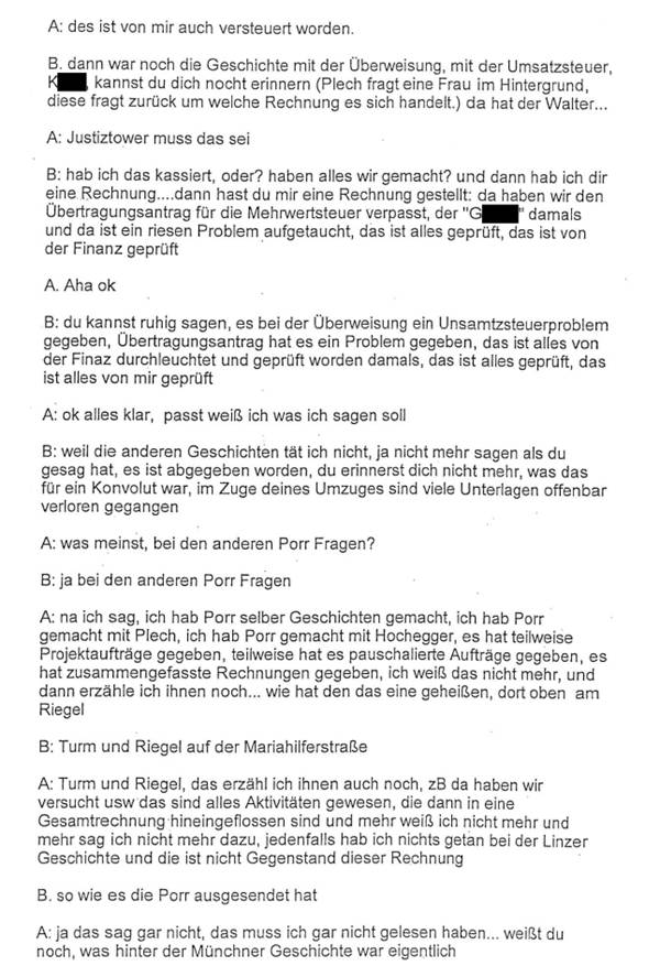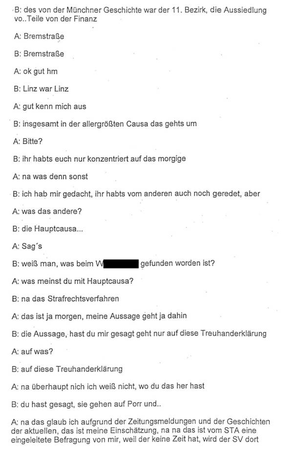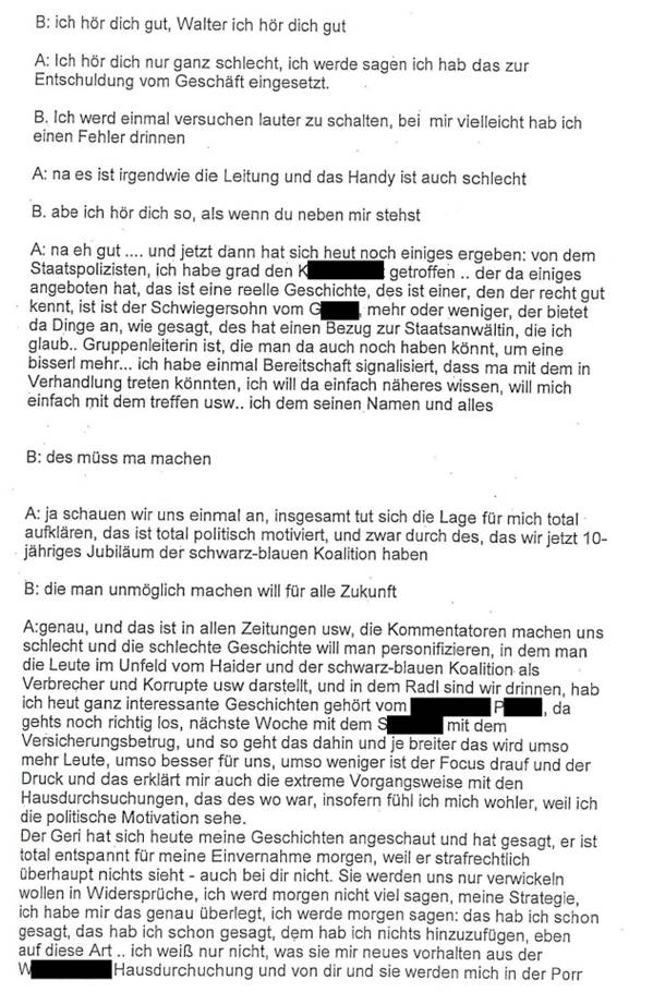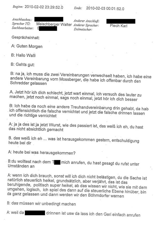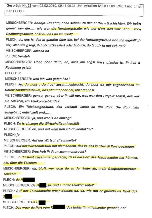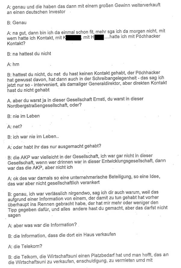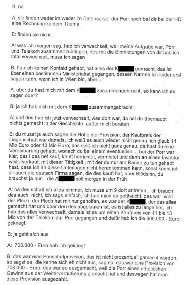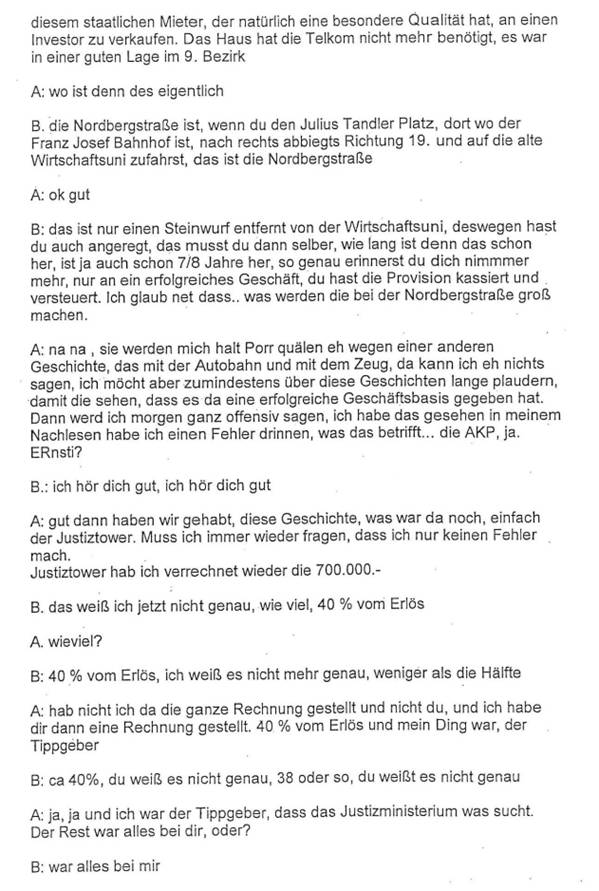 Über diese Vorgänge und andere Absprachen (ehemalige Telekom-Immobilie als privates Einmietungsobjekt für die WU Wien) liegen dem BKA folgende Protokolle der Telefonüberwachung vor, die dem Falter vorliegen: