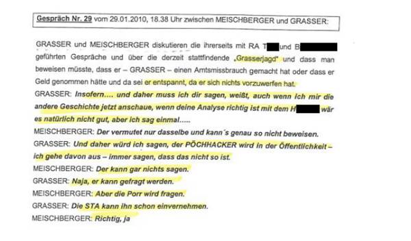 Trotz Vorliegen dieser Informationen und der Gefahr weiterer Absprachen wurden weitere Schritte der Staatsanwaltschaft, wie Einvernahme Grassers, Überprüfung der Kontoflüsse Grassers, … erst mit monatelangen Verzögerungen im Sommer gesetzt.