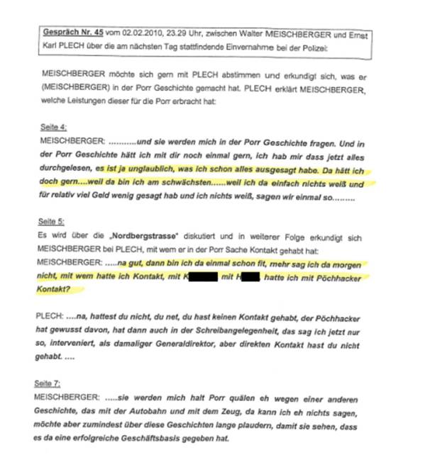 Bereits seit Beginn 2009 sind die Provisionszahlungen an Walter Meischberger für Beraterleistungen beim Verkauf der Bundeseigenen Wohnbaugesellschaften im Zug der Immofinanz-Ermittlungen der Justiz bekannt geworden. Seit Oktober 2009 liegt darüber eine Sachverhaltsdarstellung der Grünen mit Verdacht auf Untreue gegenüber dem ehemaligen Finanzminister Karl Heinz Grasser vor. Vernehmungen erfolgten daraufhin allerdings nur von Meischberger, Hochegger, Plech und Muhr. Exminister Grasser wurde erst im Sommer 2010, also 9 Monate nach Einbringung der Sachverhaltsdarstellung einvernommen. Laut Berichterstattung des Falter‘s existieren Mitschnitte bzw. Tonband-Protokolle von Handy-Telefonaten zwischen Walter Meischberger, Ernst Karl Plech und Karl Heinz Grasser bereits mit Datum 1. Februar 2010. Bei diesen Telefonaten erfolgten Absprachen über die Gründe von Provisionszahlungen durch die PORR im Zuge der Errichtung des Terminal-Towers in Linz, in den Finanzdienststellen übersiedelten. Damit ist der Tatbestand der Vertuschung und Verhinderung/Erschwerung von Ermittlungen gegeben.