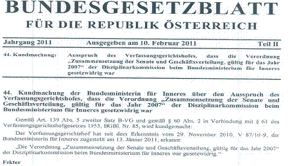 betreffend Auswirkungen der Erkenntnisse V 88,89/10-9 und V 87/10-9 des Verfassungsgerichtshofes