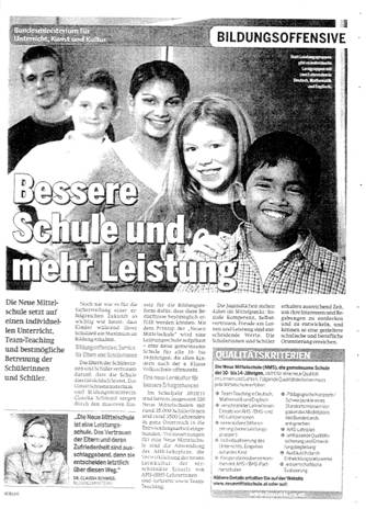 In der Tageszeitung "Österreich" vom 7. April findet sich eine ganzseitige Werbung des BMUKK unter dem Titel "Bessere Schule und mehr Leistung".