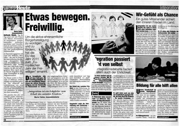 In der Gratiszeitung "Heute" vom 6. April 2011 findet sich eine mehrseitige Werbung des BMI unter dem Titel "Fokus Heute Integration".