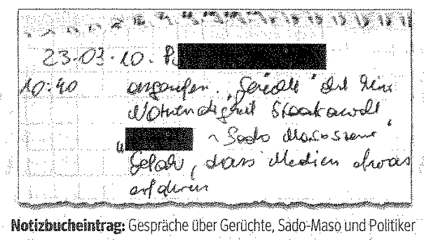 Bei den geschwärzten Namen soll es sich –laut Kurier - beim längeren schwarzen Balken um eine ermittelnde Kollegin von Kröll aus dem Bereich „Prostitution und Menschenhandel“ und beim kürzeren schwarzen Balken um einen „gewichtigen österreichischen Politiker“ handeln.