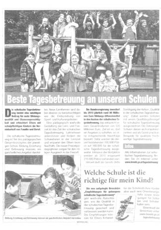 betreffend "Beste Tagesbetreuung an unseren Schulen", Inserat in "Heute" vom 20. Okt. 2011