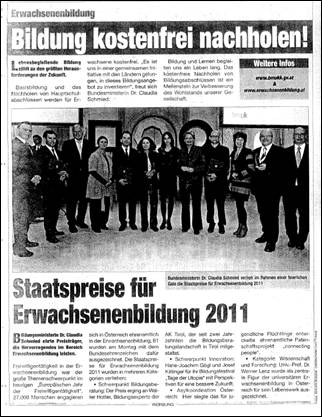 Am Donnerstag, 17. 11. findet sich in der Zeitung "Heute" ein ganzseitiges Inserat des BMUKK mit dem Titel "Bildung kostenfrei nachholen!".
