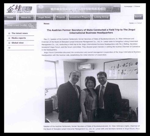 Peter Wittmann (SPÖ-Nationalratsabgeordneter) ist gern gesehener Gast in China und offensichtlich ein blendender Lobbyist. Unter anderem war er im Mai 2013 gemeinsam mit dem Lobbyisten Dr. Peter Lampl in Hangzhou und wurde dort als Nationalratspräsident des österreichischen Parlaments empfangen, wie dem untenstehenden Bericht des "Jingui Forums" zu entnehmen ist.